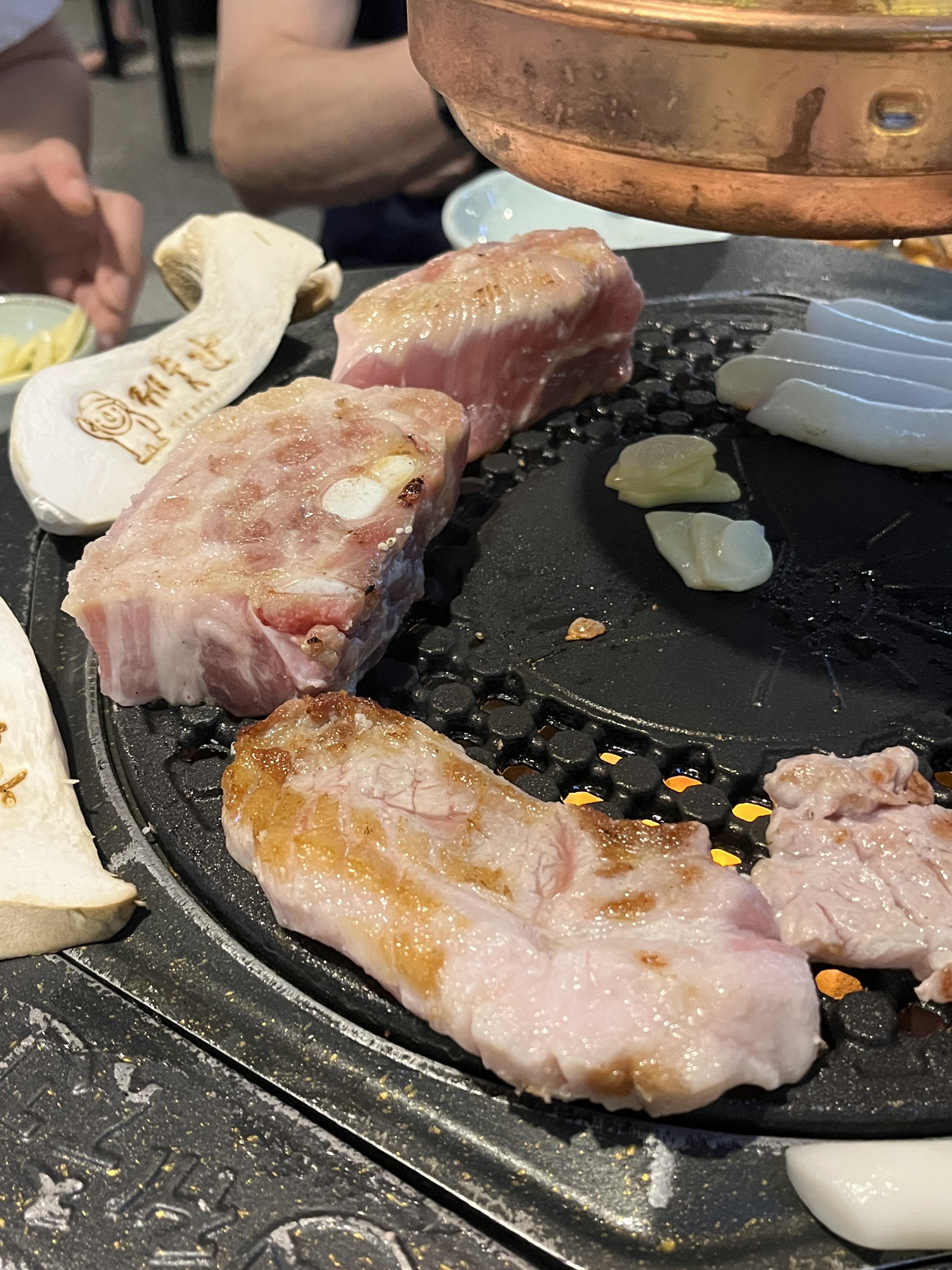 삼겹살도 너무 맛있는데 생갈비살이 쫀득쫀득 너무 맛있었습니다. 뼈채로 나와서 뼈를 뜯어먹는 재미가 있어요.