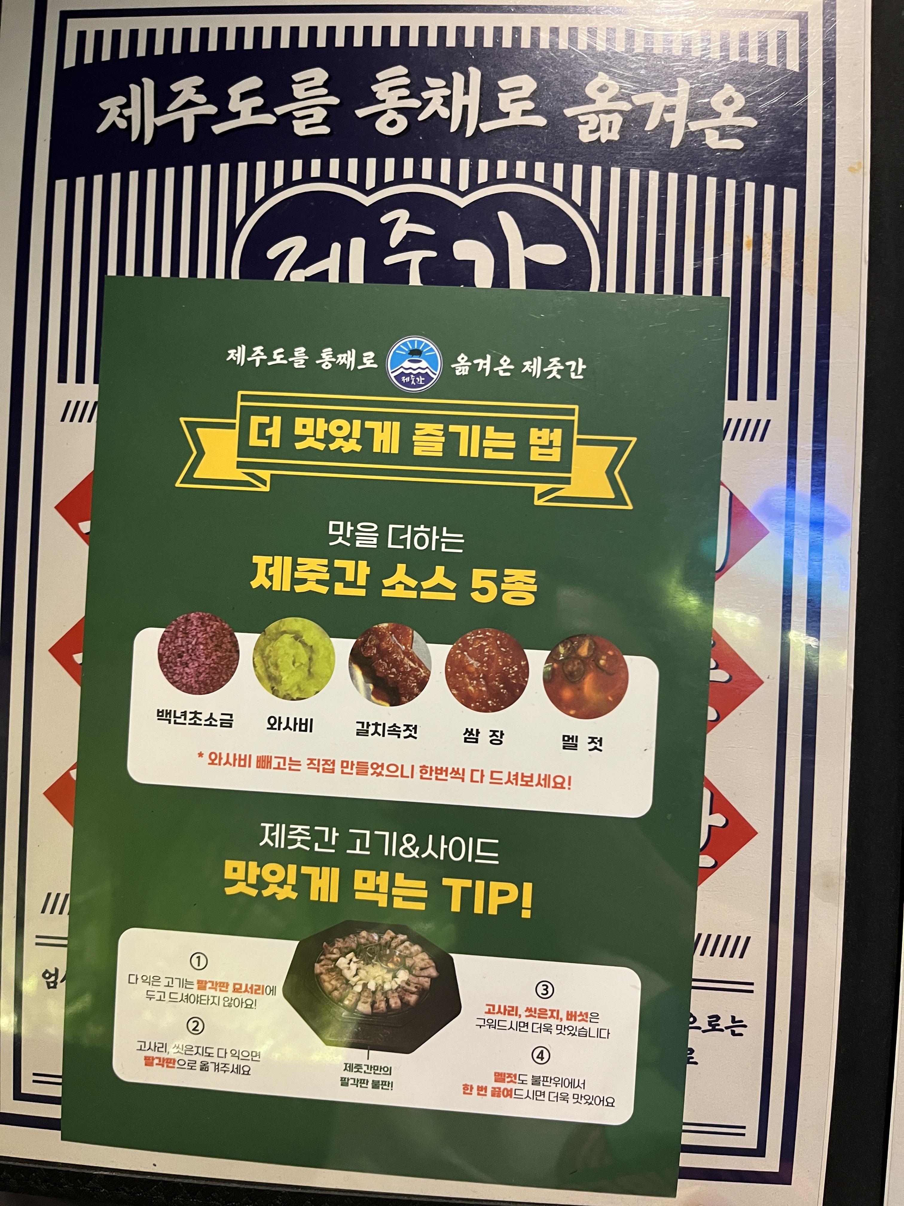 제줏간 고기와 사이드 맛있게 먹는 TIP 까지 안내되어 있습니다.