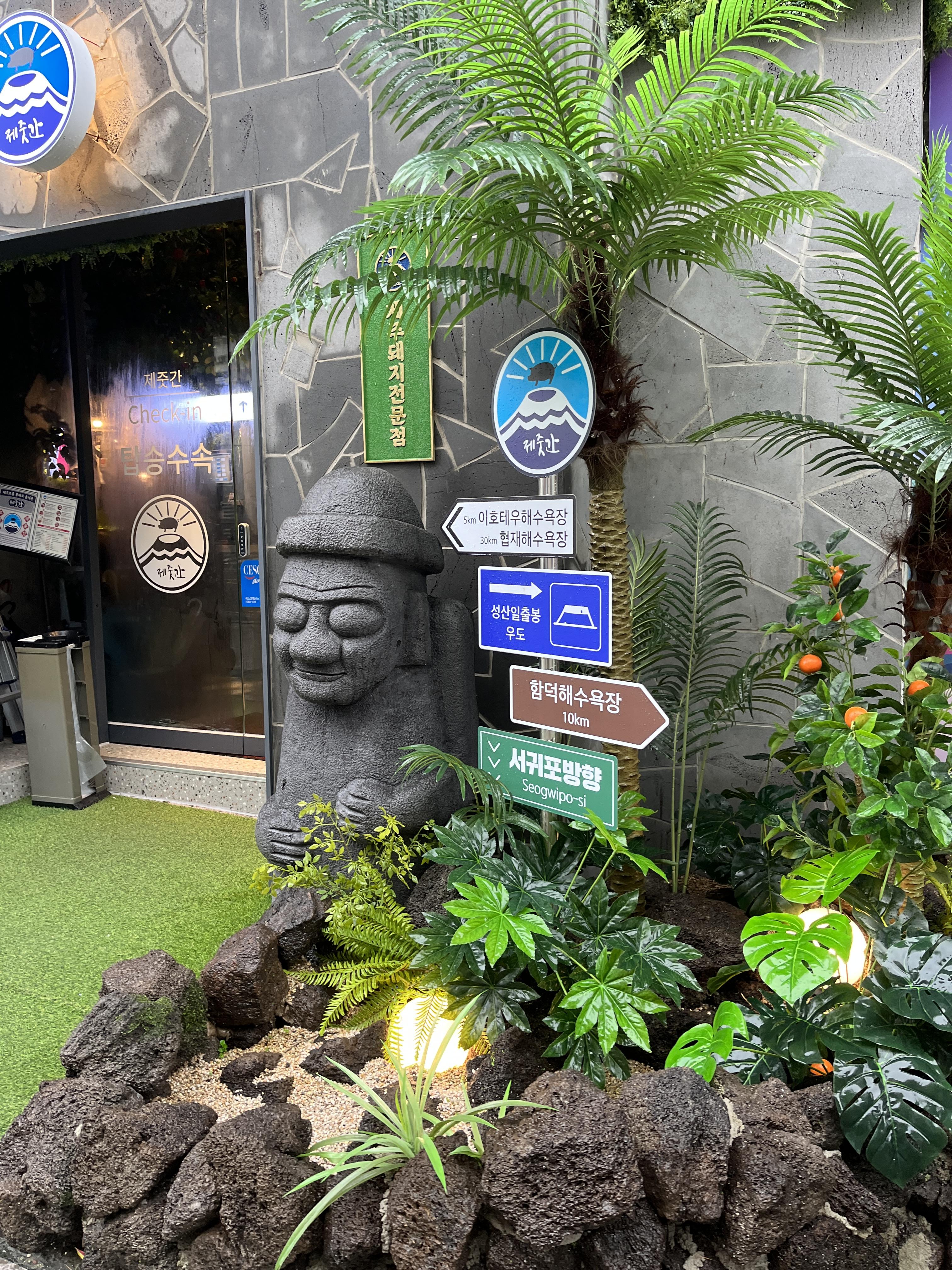 기흥구청 맛집 제줏간은 제주돼지 전문점이고 든든한 돌하르방 커플이 탑승수속을 도와주고 있습니다.