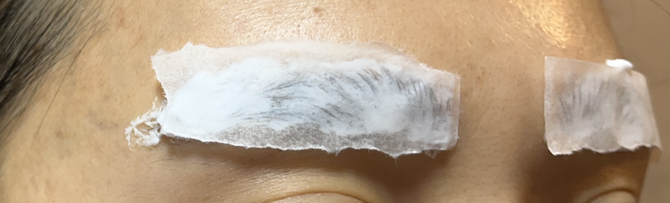 눈썹 탈색약이 흐를 수도 있으니 종이호일을 잘라 눈썹에 붙여주고 대기해주면 좀 더 편하게 기다릴 수 있습니다.