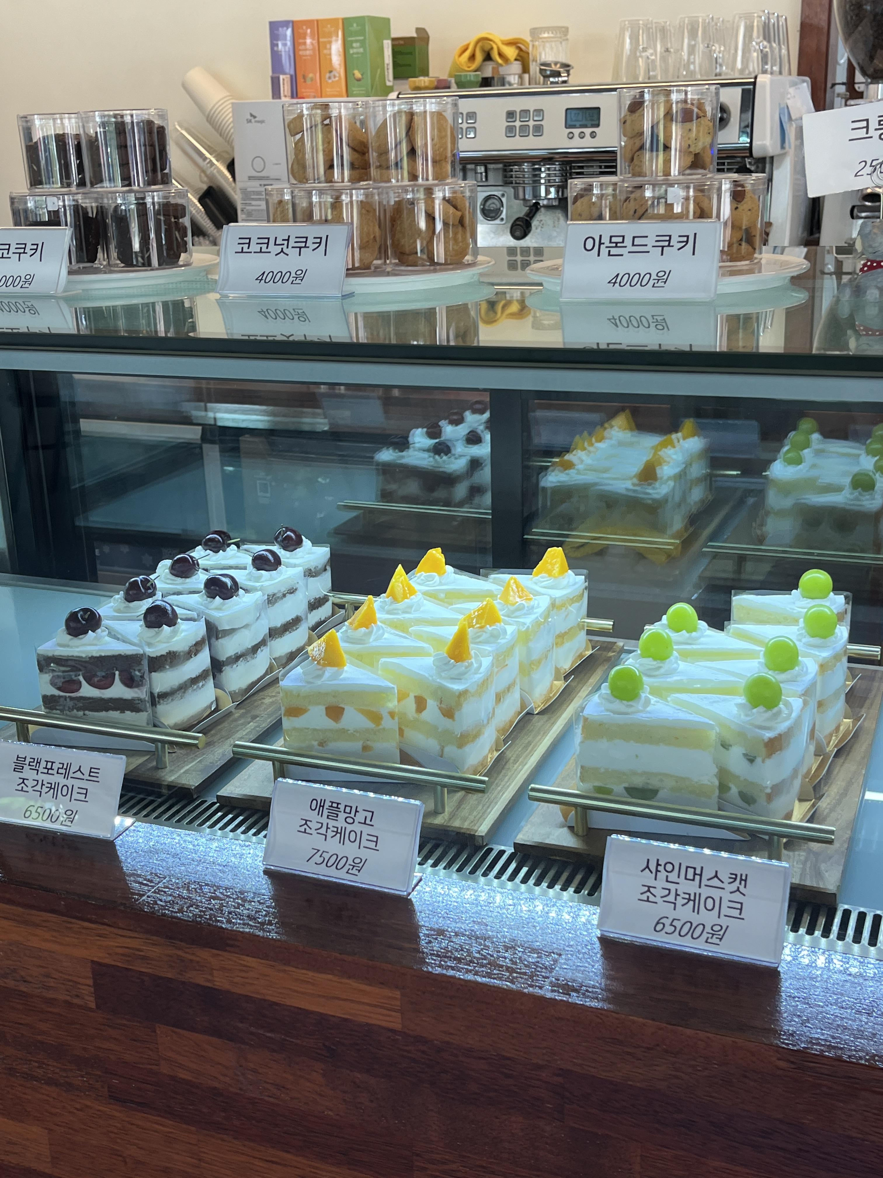 초코쿠키 아몬드쿠키 코코넛쿠키 블랙포레스트 조각케이크 애플망고 조각케이크 샤인머스캣 조각케이크