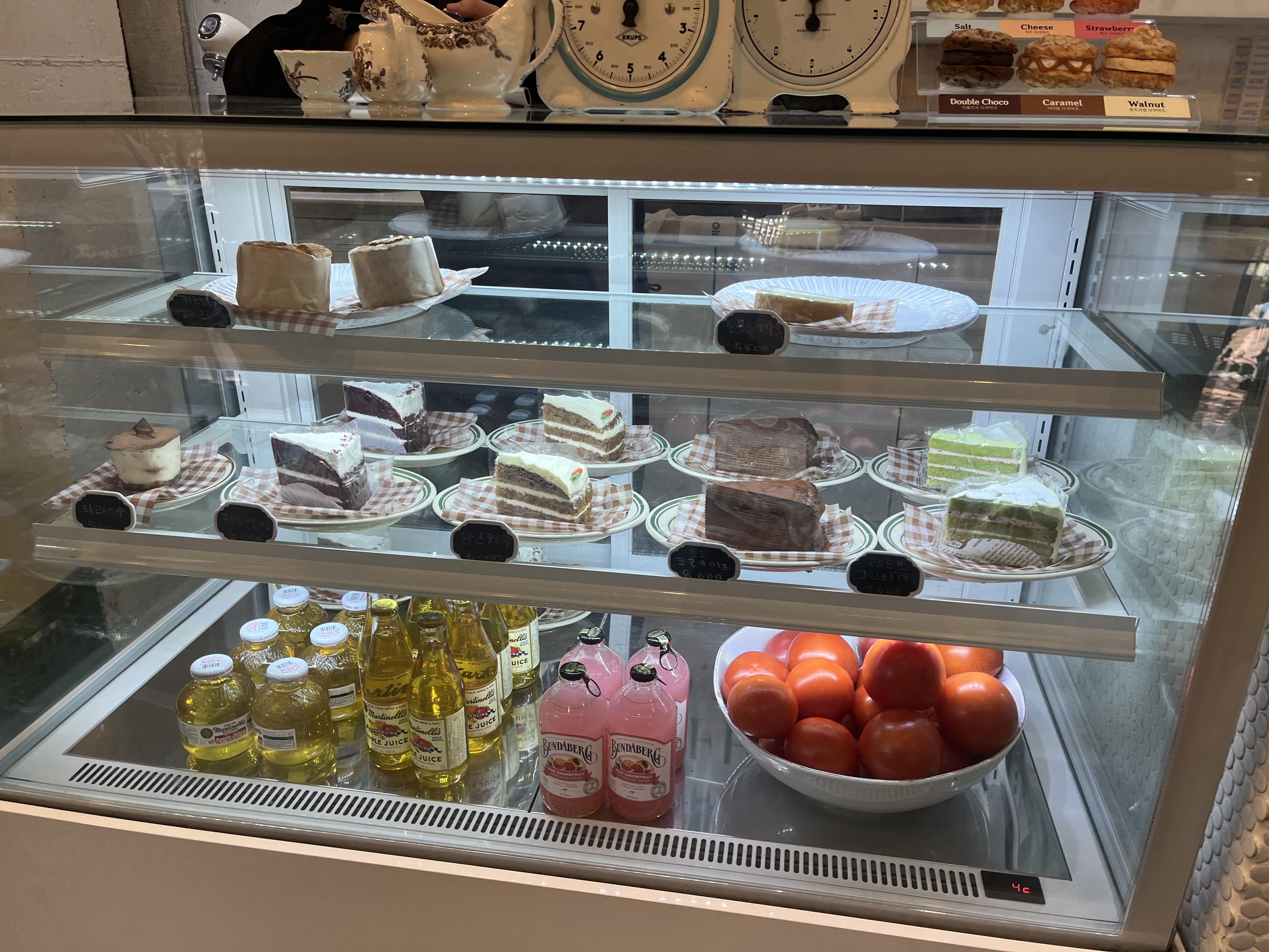 생토마토쥬스를 만들어주는 토마토들도 보관되어있고 먹음직스러운 케이크종류도 디피되어 있습니다.