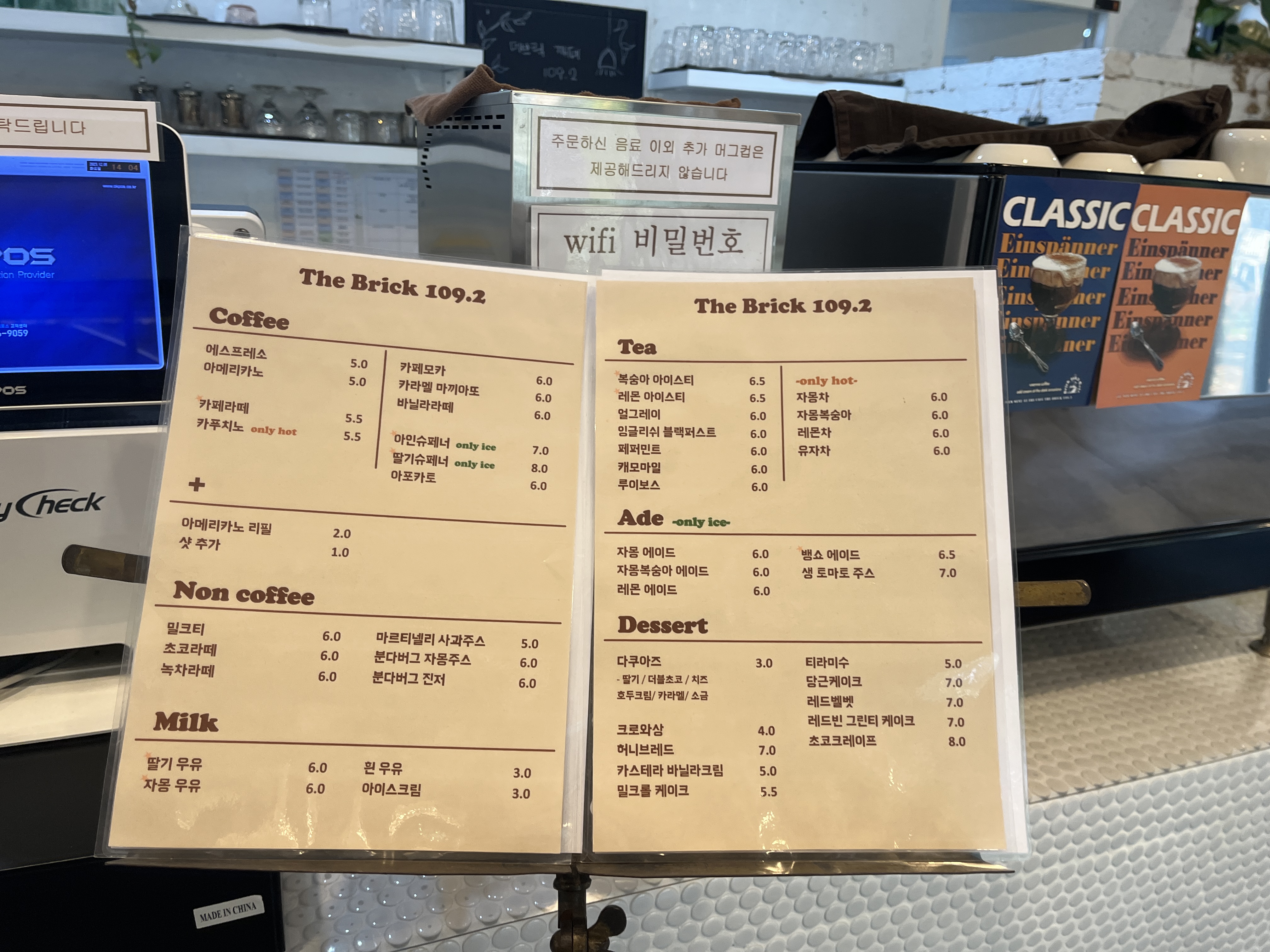 그럼 분당 판교 운중동 카페 더브릭109.2의 메뉴판을 보여드리겠습니다.
