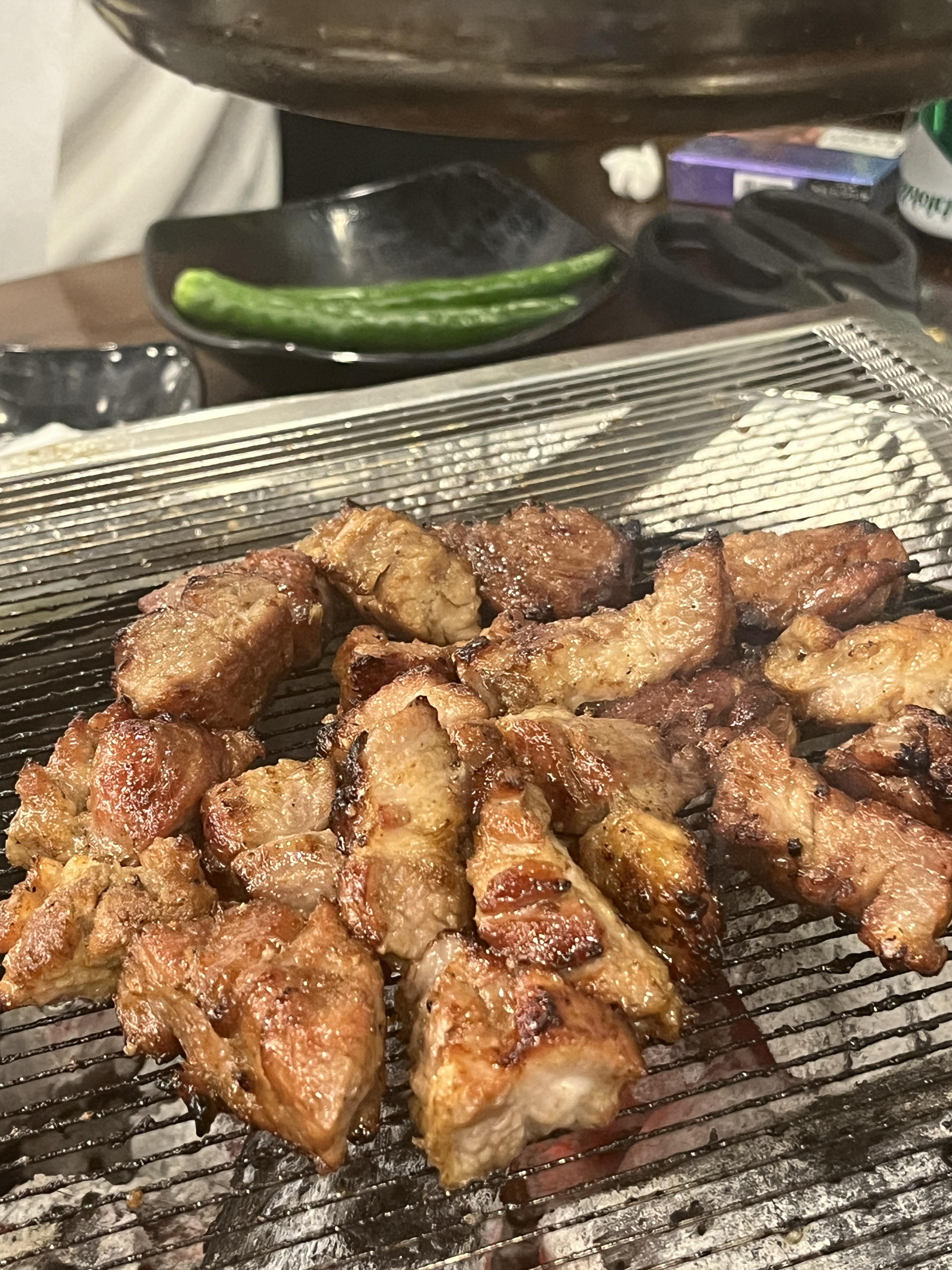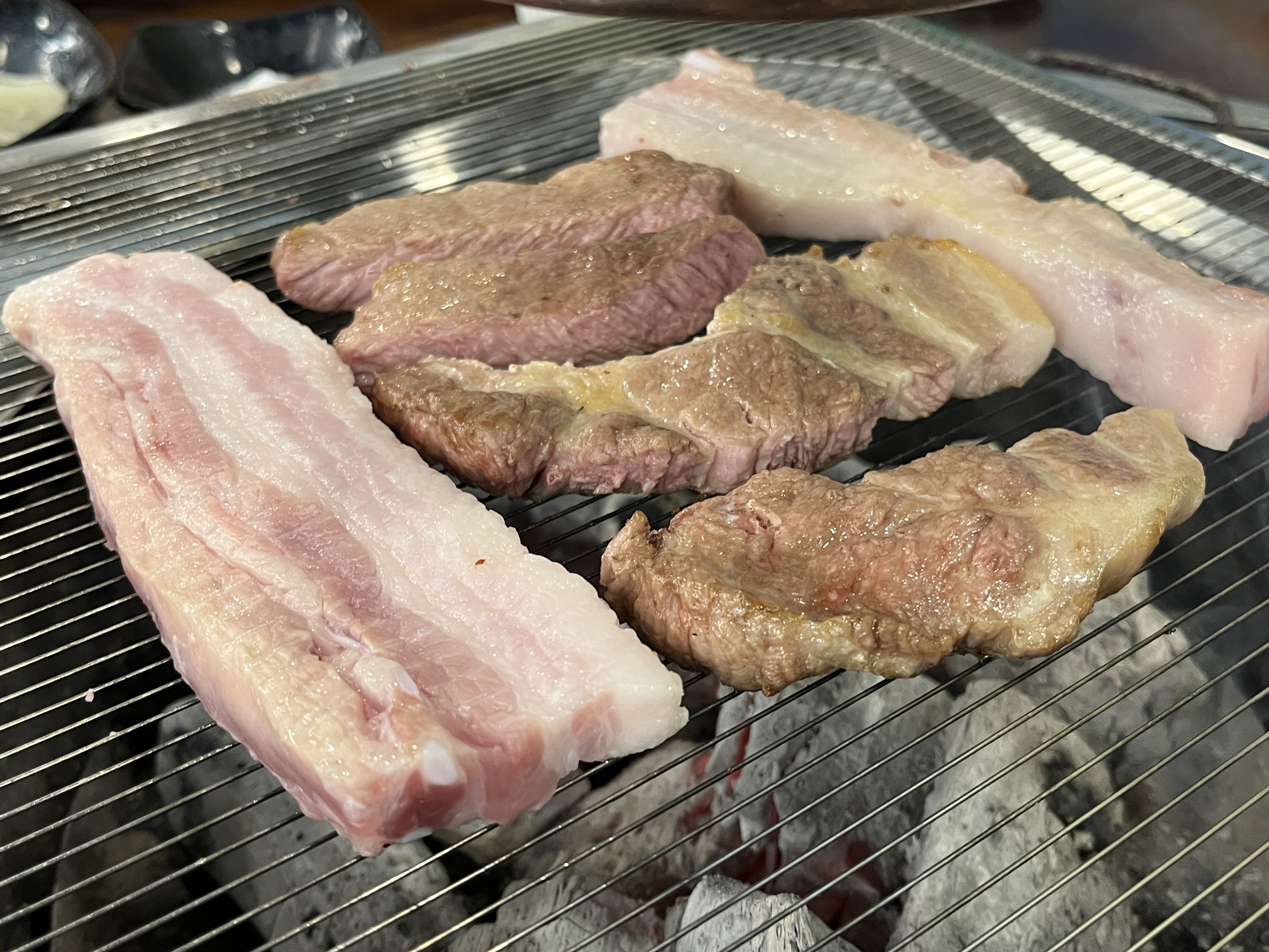 처음에 목살을 구울때는 숯불이 약해서 목살이 천천히 익었는데 그래도 뻑뻑하지 않고 부드러워서 고기 맛집이라고 느꼈습니다.