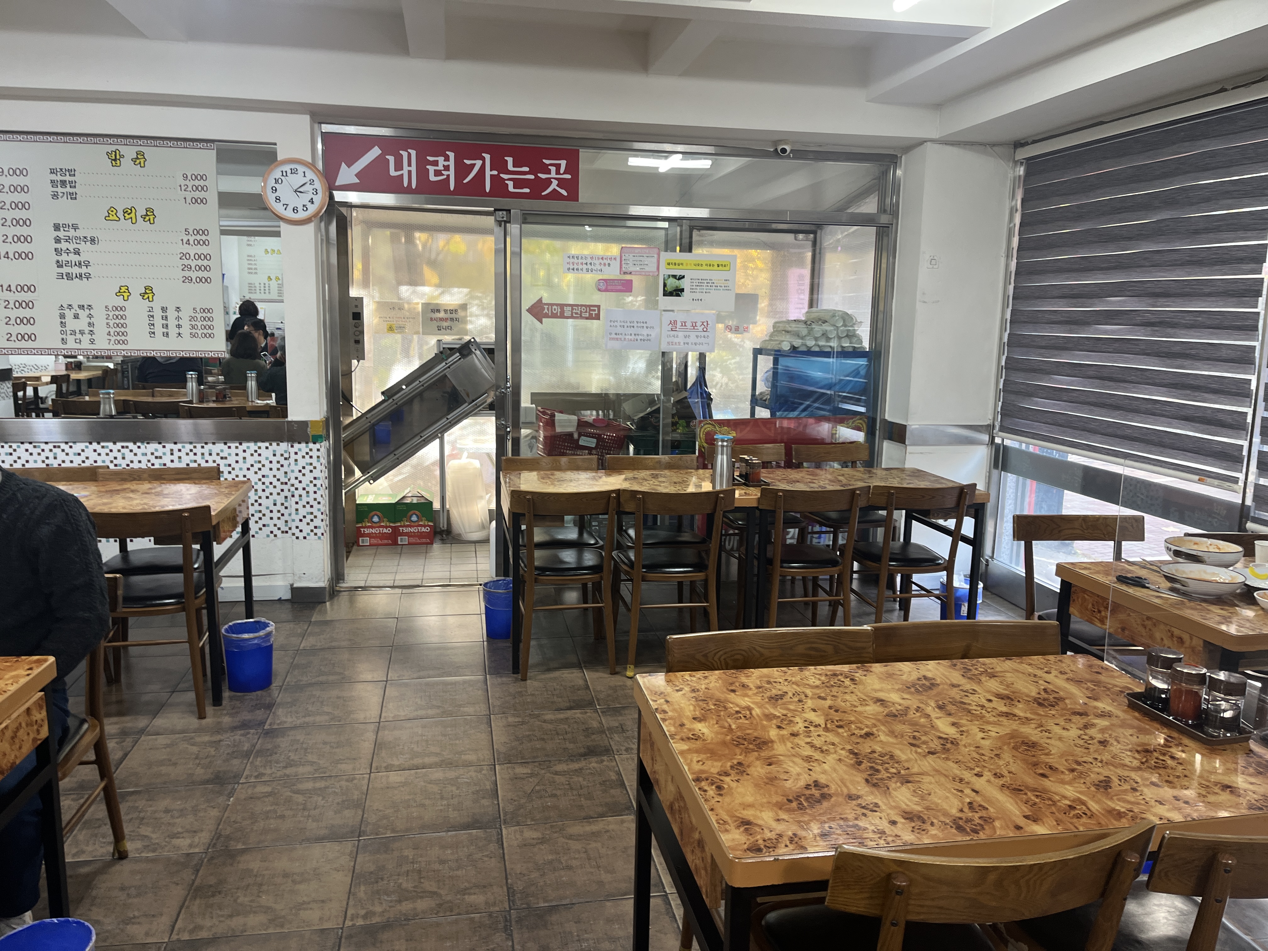 처음에 왔을때는 만석이라 식당사진을 못 찍었는데 다 먹고 나가려니 테이블들이 한두개 비었습니다.