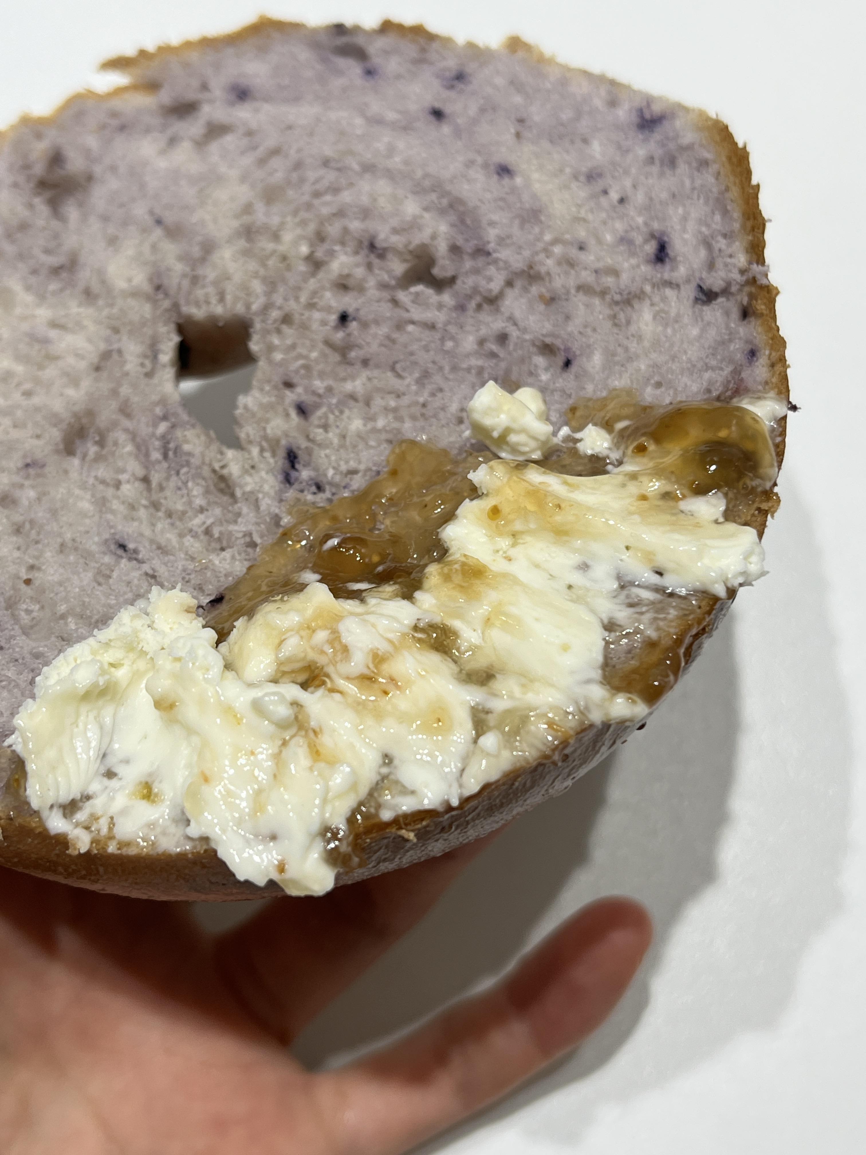 블루베리 베이글은 플레인 크림치즈를 발라야 맛있는데 무화과잼 크림치즈를 맛보고 싶은 욕심에