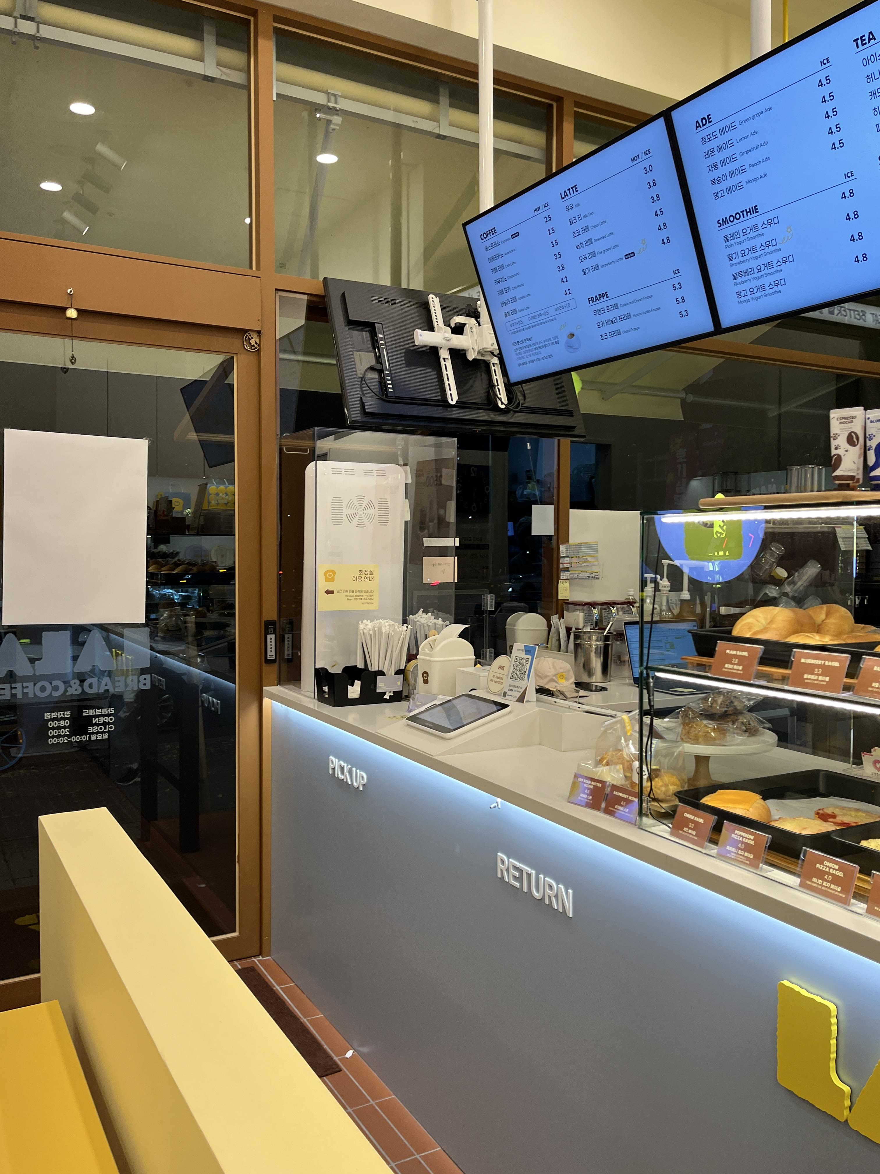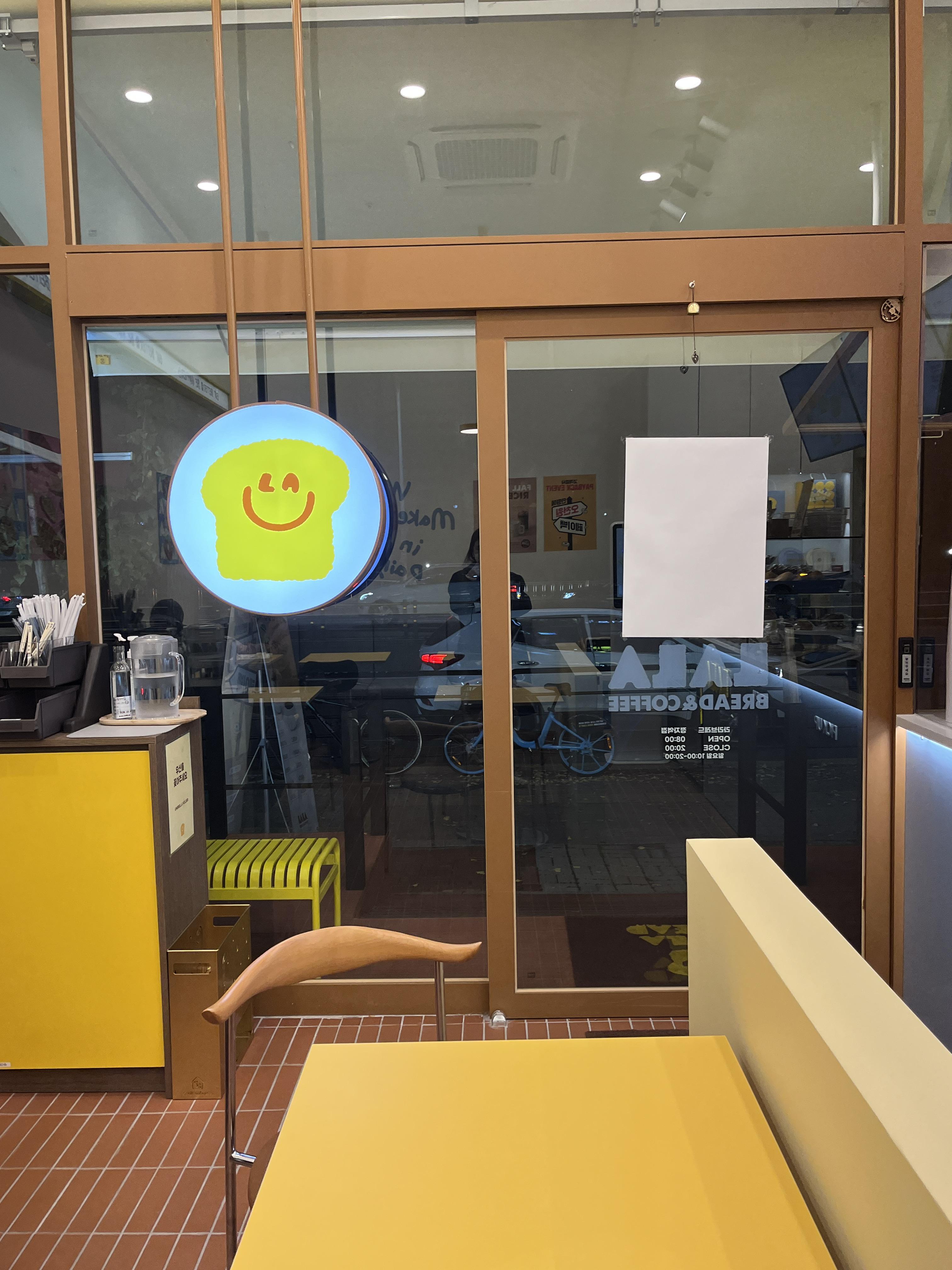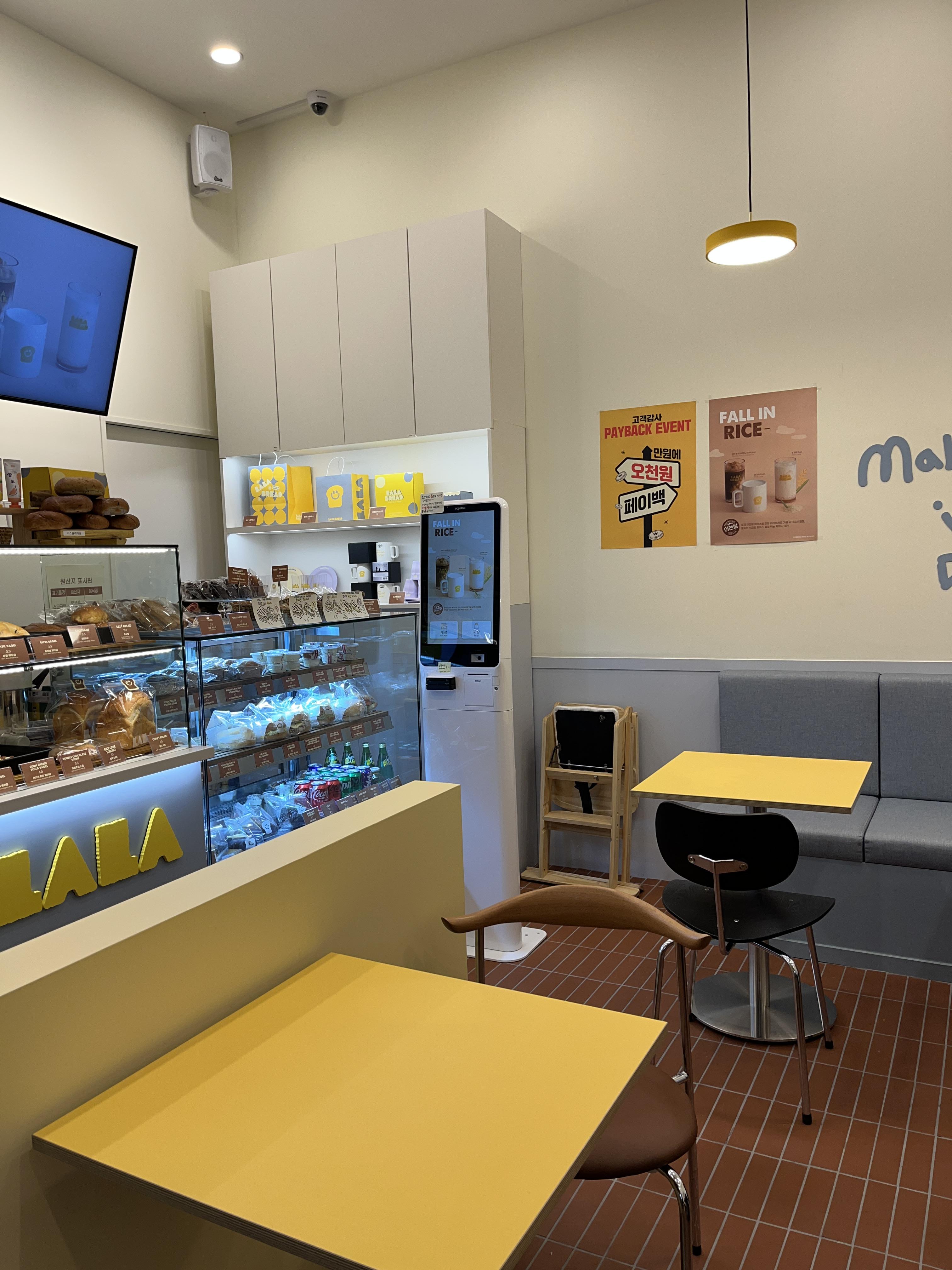정자역 베이글 맛집 라라브레드 내부는 아기자기하고 옐로우 포인트가 매력적인 인테리어였습니다.