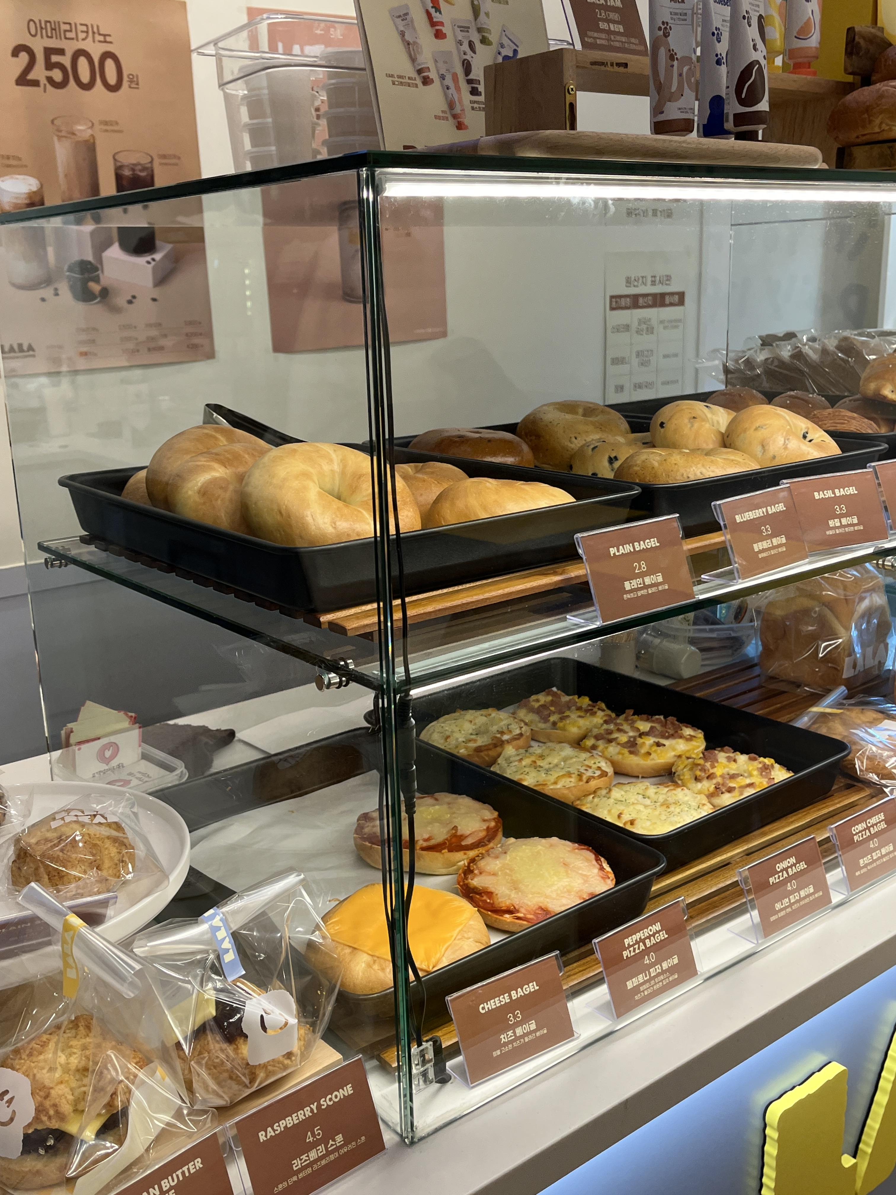 베이글 사러 왔다가 다른 빵들에 한눈 팔뻔 했네요..