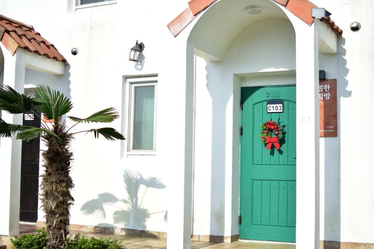 초록색 대문이 포인트인 제주도 가성비 애월 숙소 달콤한 다락방이네요!