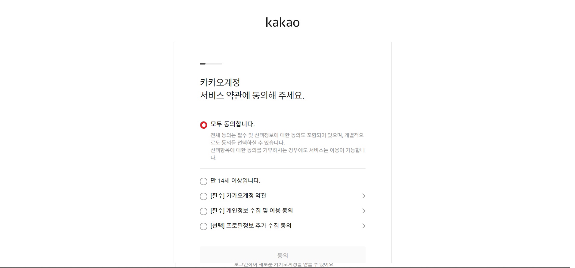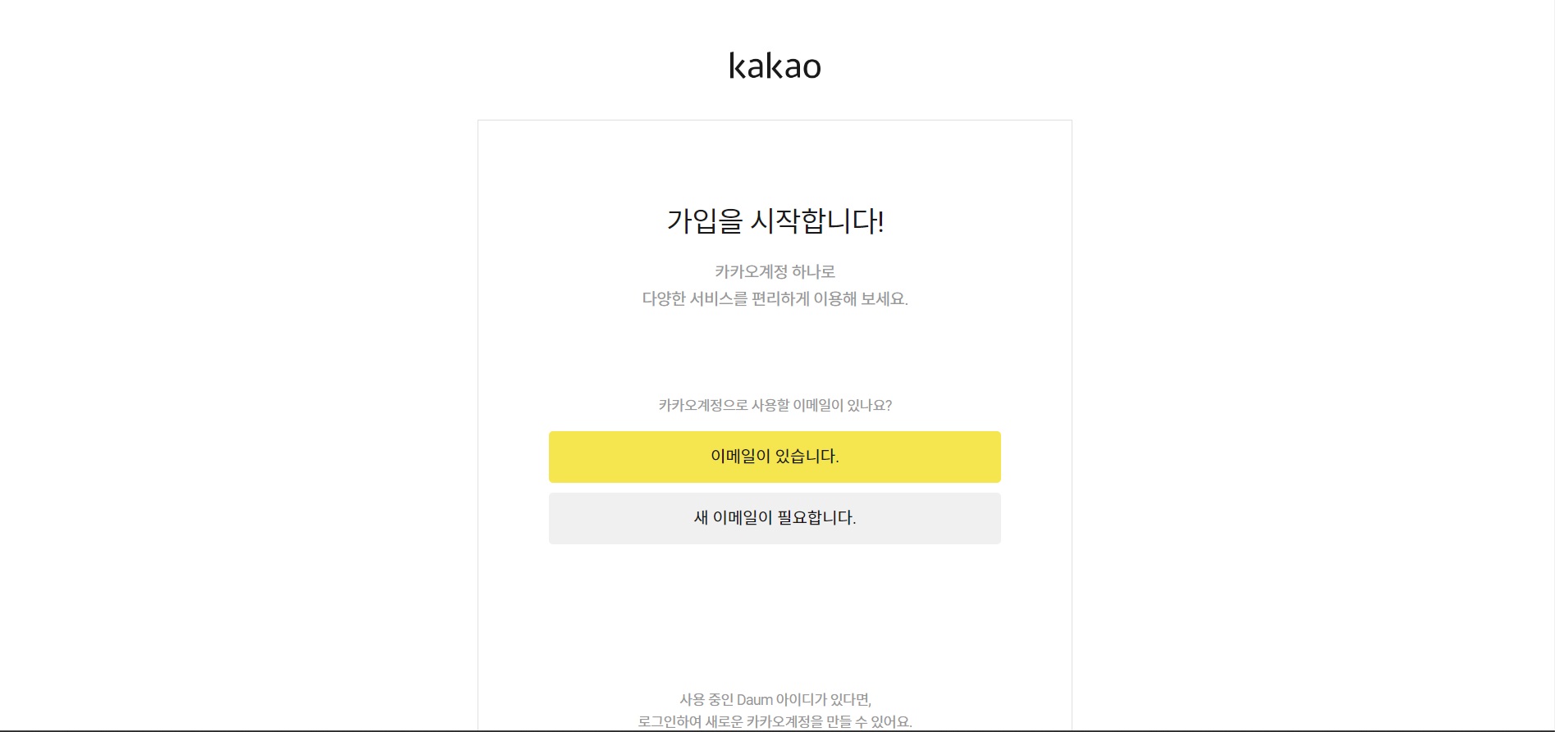 1. 카카오 계정 첫화면 왼쪽 하단의 회원가입을 누릅니다.
