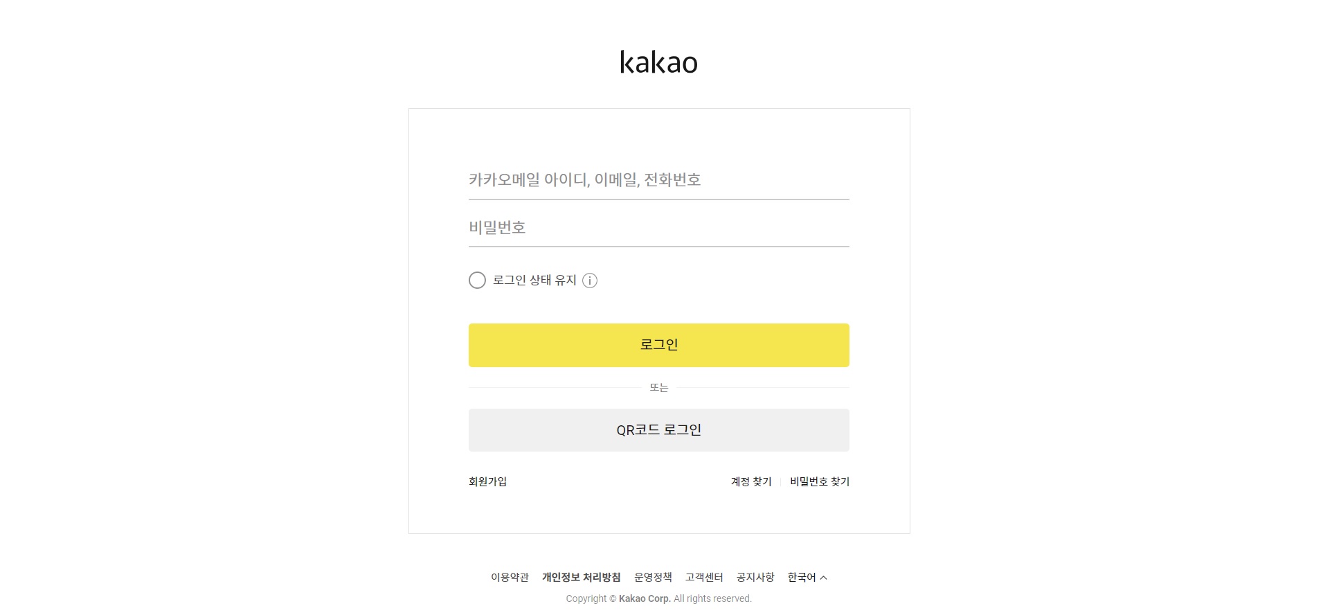 남겨둔 링크를 클릭하면 카카오 계정 페이지가 나옵니다.